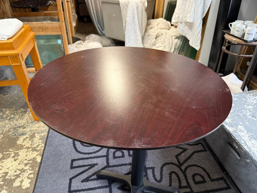 Dark wood round Side Table With Glass On Top Dimensions: 27"R x 28"H