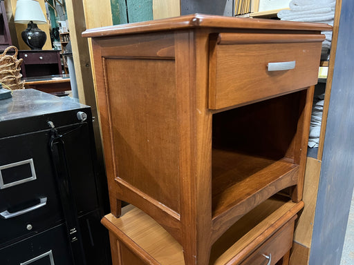 Small Night Table in the Color Honey. Includes a little cabninet in the bottom. Dimensions: 22" x18" x 24"