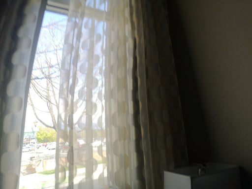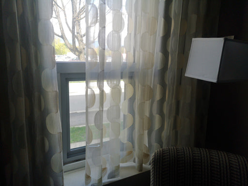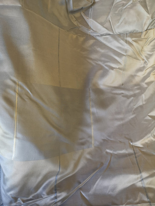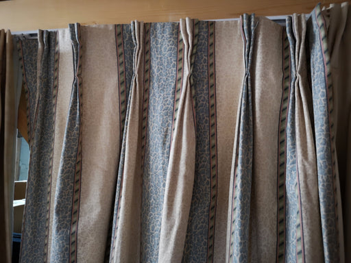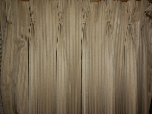 These blackout drapes are in excellent condition. They are a subtle silver and gold wide stripe and measure 32"wide x 96" long