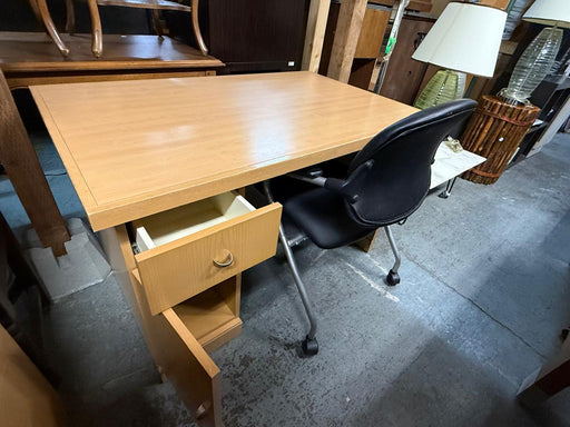 Wood Desk in Honey Color. 4 legs and a drawer in middle. Dimensions: 52"L x 26" W x 30" H