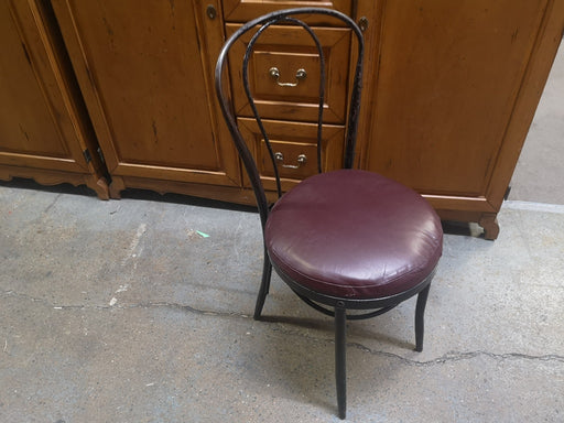 This item is for rent to the film industry only French cafe style dining chair with metal frame and vinyl upholstery 23 pieces available