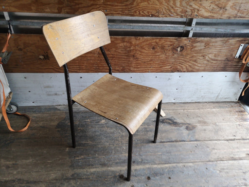 Industrial look dining chair great for home, restaurant or events. This chair can be stacked also. Black upholstery has some flaws but can be rem...