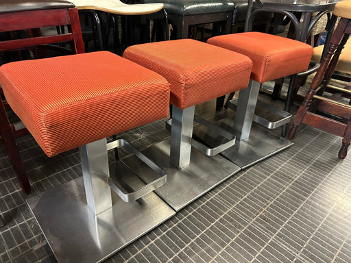 square red counter height stools on a metal base. Dimensions: 18" x 18 x 24"