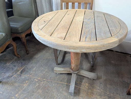 Solid teak 30" round table. It's been weathered but with a little stain comes out even more beautiful. Great for the home balcony and for restauran...