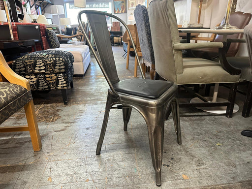 Industrial look dining chair great for home, restaurant or events. This chair can be stacked also. Black upholstery has some flaws but can be rem...