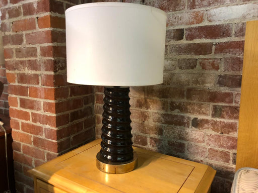 Brown metal table lamp. The lamp shade is a sample and can be interchanged